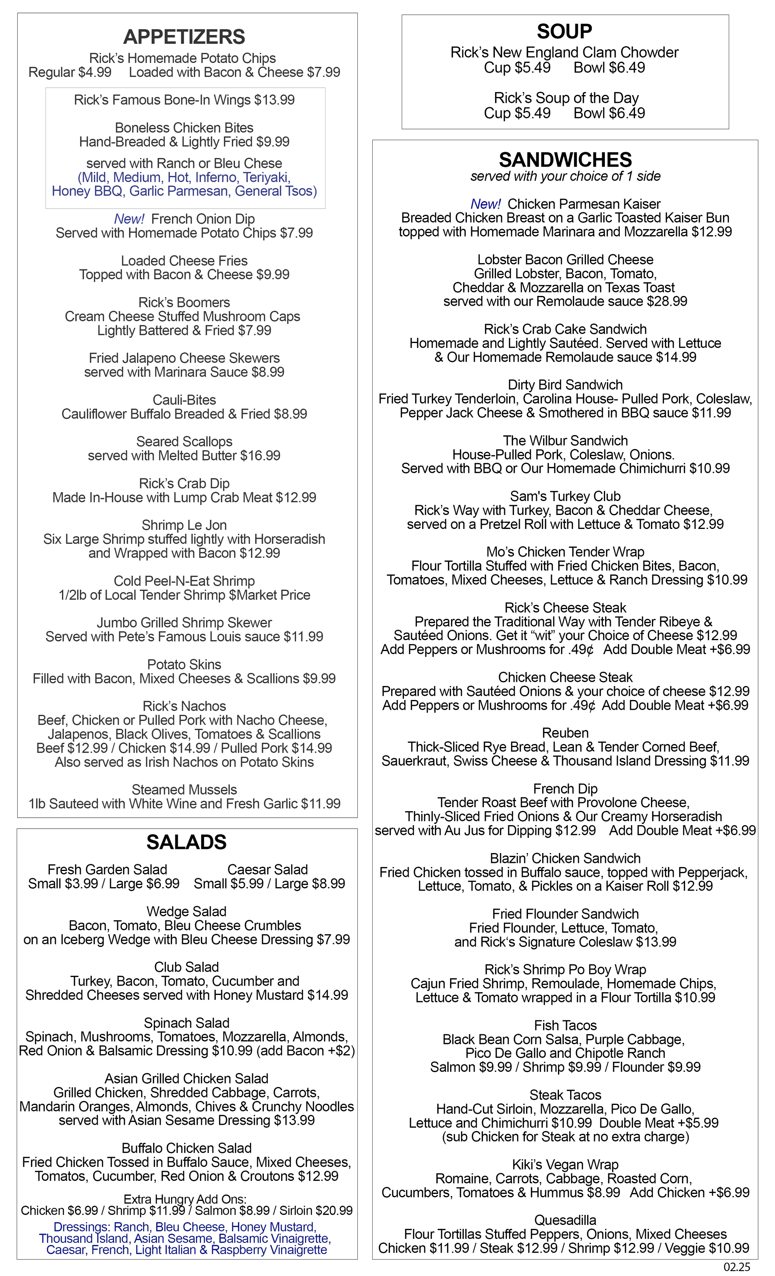Featuring Award-Winning Steaks, Fresh Seafood, Salads, Sandwiches, Pastas and Homemade Desserts.